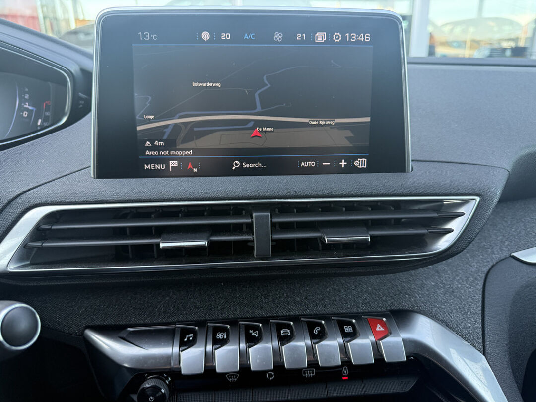 Zoals u mag verwachten van deze Peugeot 3008 is hij uitgerust met een reeks aan actieve veiligheidssystemen. Dat de auto steeds meer taken van de bestuurder overneemt, merkt u bijvoorbeeld aan het systeem voor verkeersbord-detectie in deze Peugeot. Het Lane-keeping systeem registreert permanent of u binnen de lijnen van de rijstrook blijft; dwaalt u onbedoeld af, dan waarschuwt het systeem en corrigeert de koers. Op lange ritten voorkomt de vermoeidheidsassistent dat uw concentratie afneemt. De auto is ook uitgerust met hill hold functie, brake assist en bandenspanningcontrolesysteem.