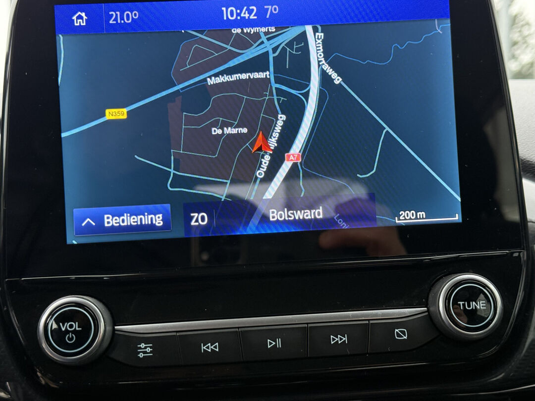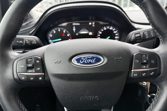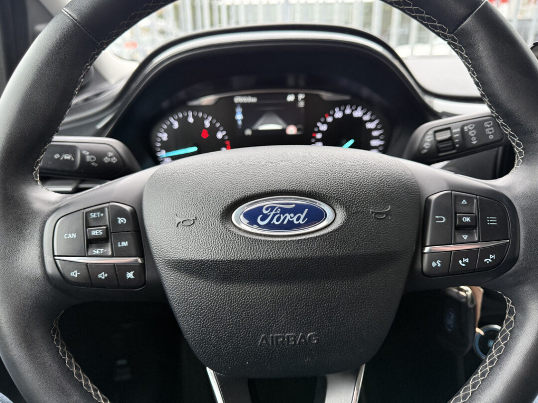 Zoals u mag verwachten van deze Ford Puma is hij uitgerust met een reeks aan actieve veiligheidssystemen. Verkeersborddetectie herkent tijdelijke en permanente verkeersborden langs en boven de weg. Voorzien van het Lane-keeping systeem. Ofwel: blijf automatisch in je baan. Ook als uw aandacht even verslapt, blijft de forward collision warning bij de wekker. Dreigt er een botsing met een voor- of tegenligger, dan waarschuwt het systeem direct. Met voorzieningen als hill hold functie, brake assist en bandenspanningcontrolesysteem, bent u altijd veilig onderweg.